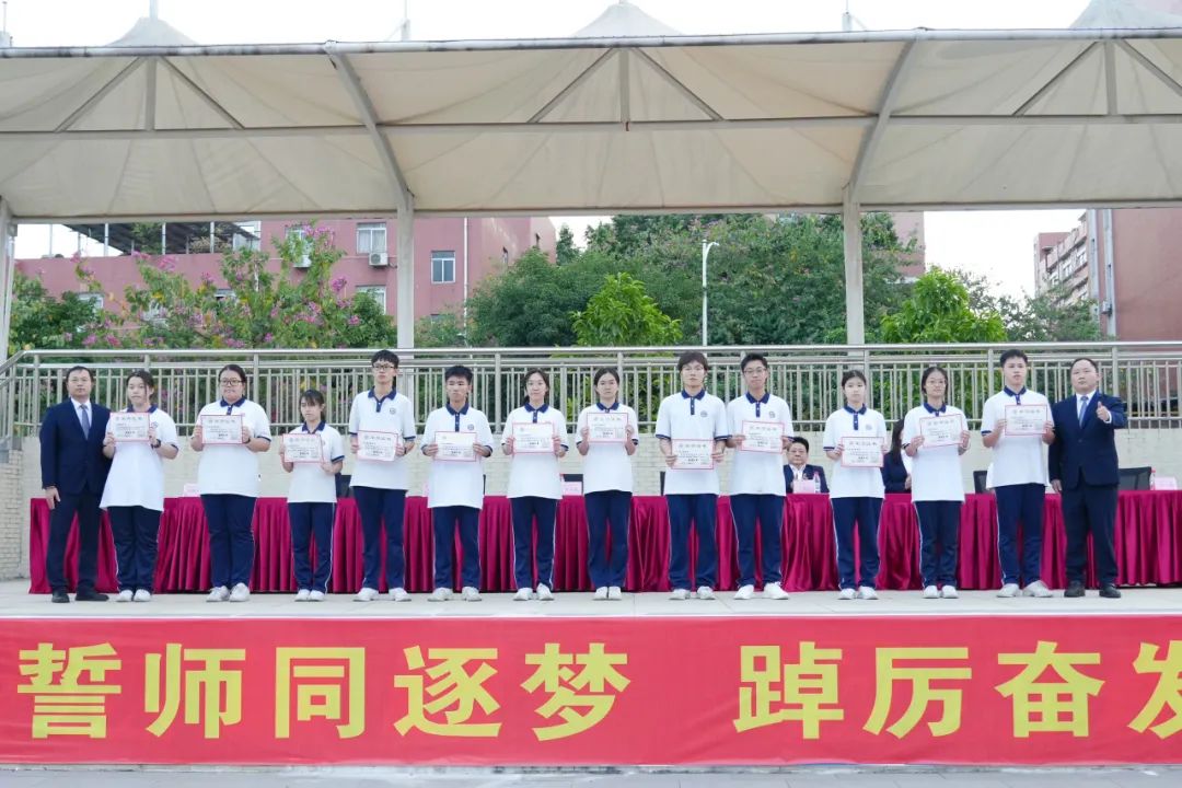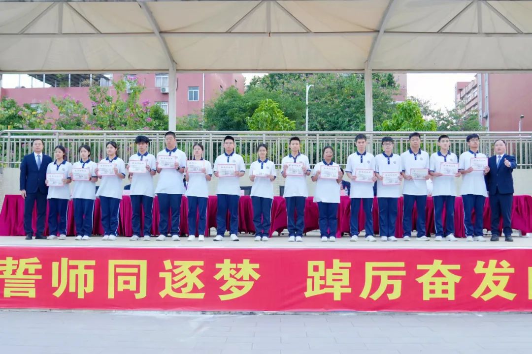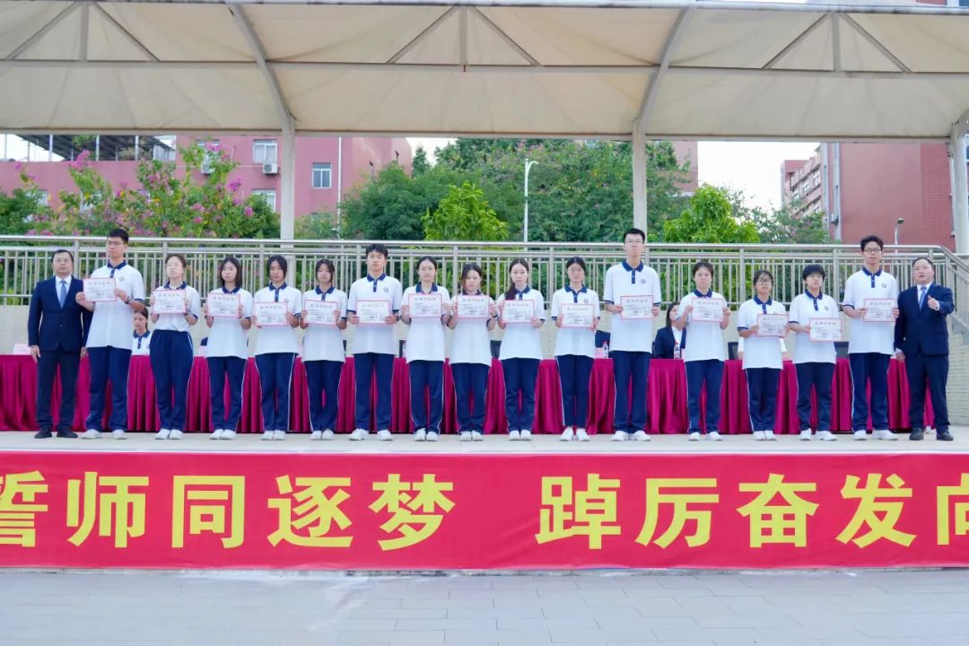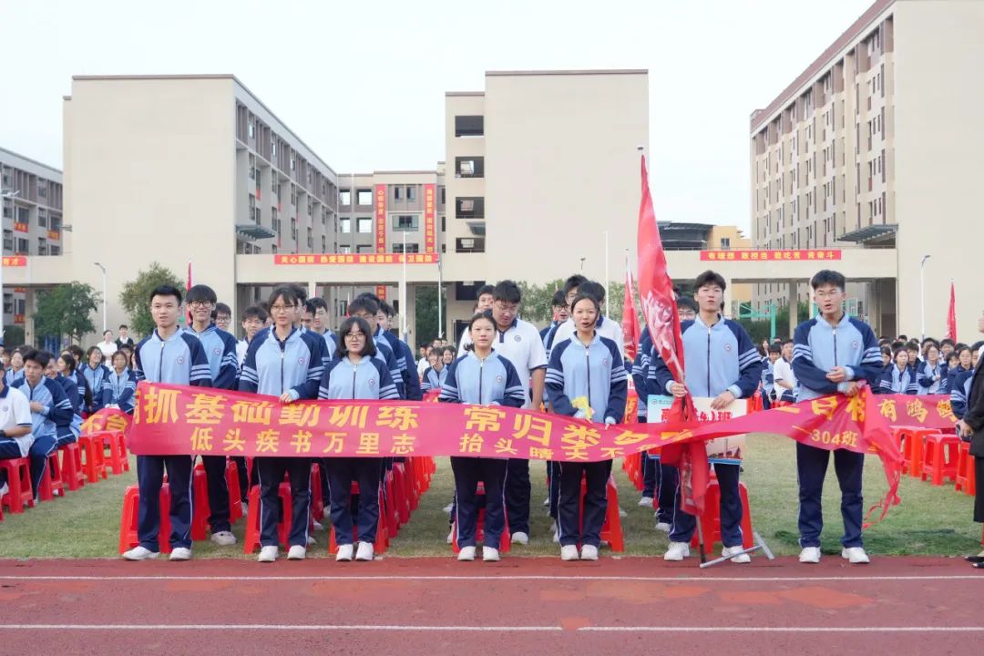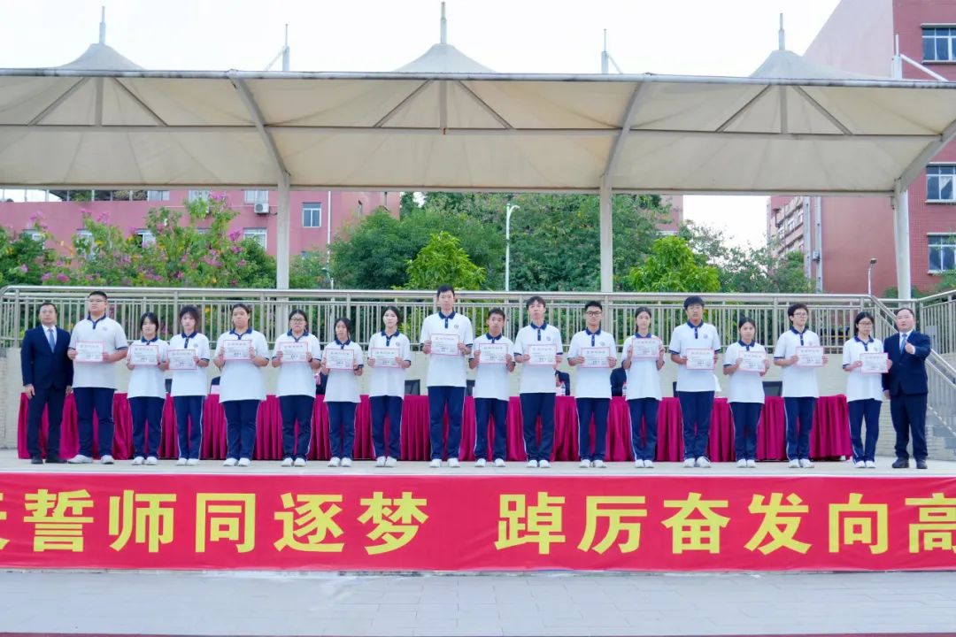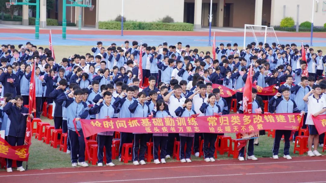旌旗猎猎,誓言铮铮。为进一步激发2025届高三师生迎战高考、决胜高考的斗志,点燃学生鏖战高考的豪情,提振学生冲刺高考的信心,11月18日上午,南山湖实验中学隆重举行了激情澎湃、振奋人心的两百天誓师大会,擂起了催征的战鼓,吹响了冲锋的号角。 升国旗 全体人员昂首肃立 高唱国歌 拉开二百日冲刺誓师大会的序幕 飘扬的五星红旗 点燃的是高三学子的青春梦想 铿锵激昂的国歌声 奏响的是催征的战鼓、进军的号角 表彰先进 十年磨一剑,百日铸辉煌 在高三生活已然走过的日子里 涌现出一大批优秀学生 他们严于律己,夜以继日 “榜样”是他们的代名词 学海无涯,他们以刻苦勤奋领航 颁奖,是对他们努力的最好鼓励 何澳盈同学代表发言 真诚,真情 200天 与时间赛跑,与自己较量 掷地有声地诠释了“斗志铸青春” 学不成功誓不还 狭路相逢勇者胜 学生代表发言 字字发自肺腑 句句流露学子誓夺桂冠的决心和自信 李厚喜校长发言 在最后200天 明确目标,坚定方向 自信自强,精准发力 意志坚定,勇往直前 全力以赴,百折不挠 平和心态,讲求效率 科学备考,跃马扬鞭 以百倍的信心、千倍的激情和万倍的努力 夺取2025年高考的胜利 追寻自己的光荣与梦想 各班表决心 雄关漫道,关山重重何所惧 壮士凌云,志气豪迈显英雄 斗志铸青春,激情燃高考 200天,就是激情燃烧的岁月 全体宣誓 震天的誓言 开启拼搏高考的大门 拉开冲刺的序幕 师生同心,拼搏两百日 众志成城,决胜高考时 END 心中有梦,山海无阻 少年执笔书壮志 切莫辜负来时路 十二年寒窗,塑造人生 两百日冲刺,改变命运 少年们,让我们 振奋精神,满怀信心 竭尽全力,勇敢亮剑 让所有梦想都闪光 突破极限,展翅翱翔 一起圆梦,2025年高考